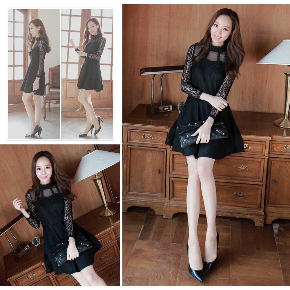 【日本倉庫即納】 レース ワンピース 長袖ワンピース レディース きれいめ 上品 清楚 ドレス