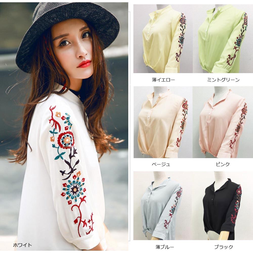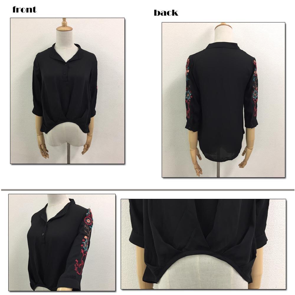 【日本倉庫即納】 ブラウス 花柄刺繍 シャツ 春夏 トップス 7分袖 プルオーバー