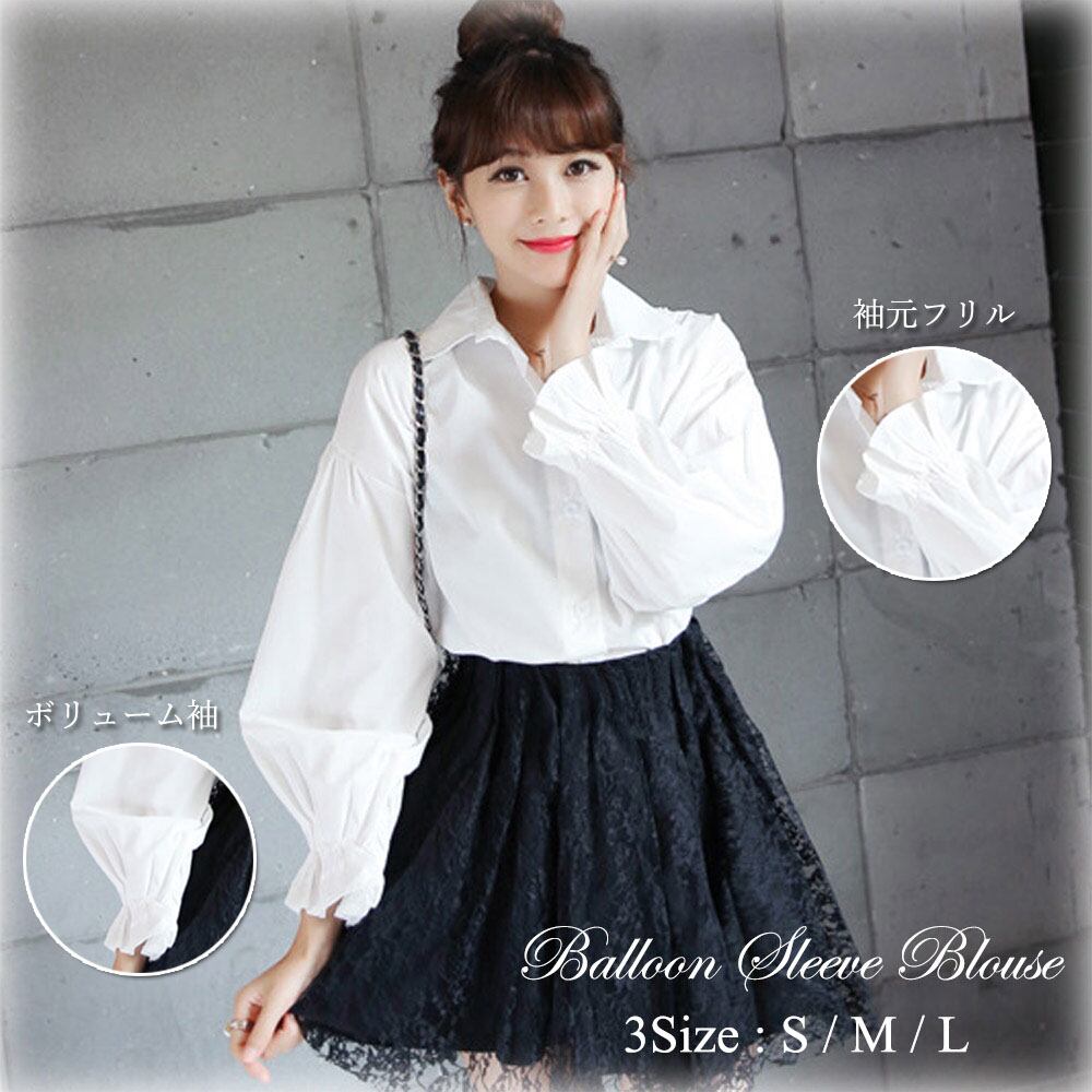 【日本倉庫即納】 シャツ レディース 長袖 ボリューム袖 ブラウス バルーン袖 ブラウス