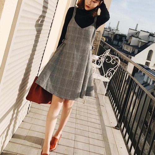 【日本倉庫即納】 ワンピース レディース グレンチェック キャミソール ワンピース 秋 フレア