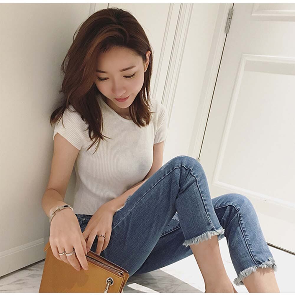 【日本倉庫即納】 サマーニットトップス 春夏 ショート丈トップス 半袖 ニット カットソー