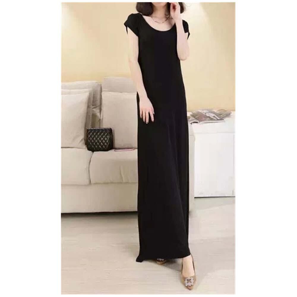 さらさら生地が肌に心地良さを与えてくれる半袖ロングワンピース
