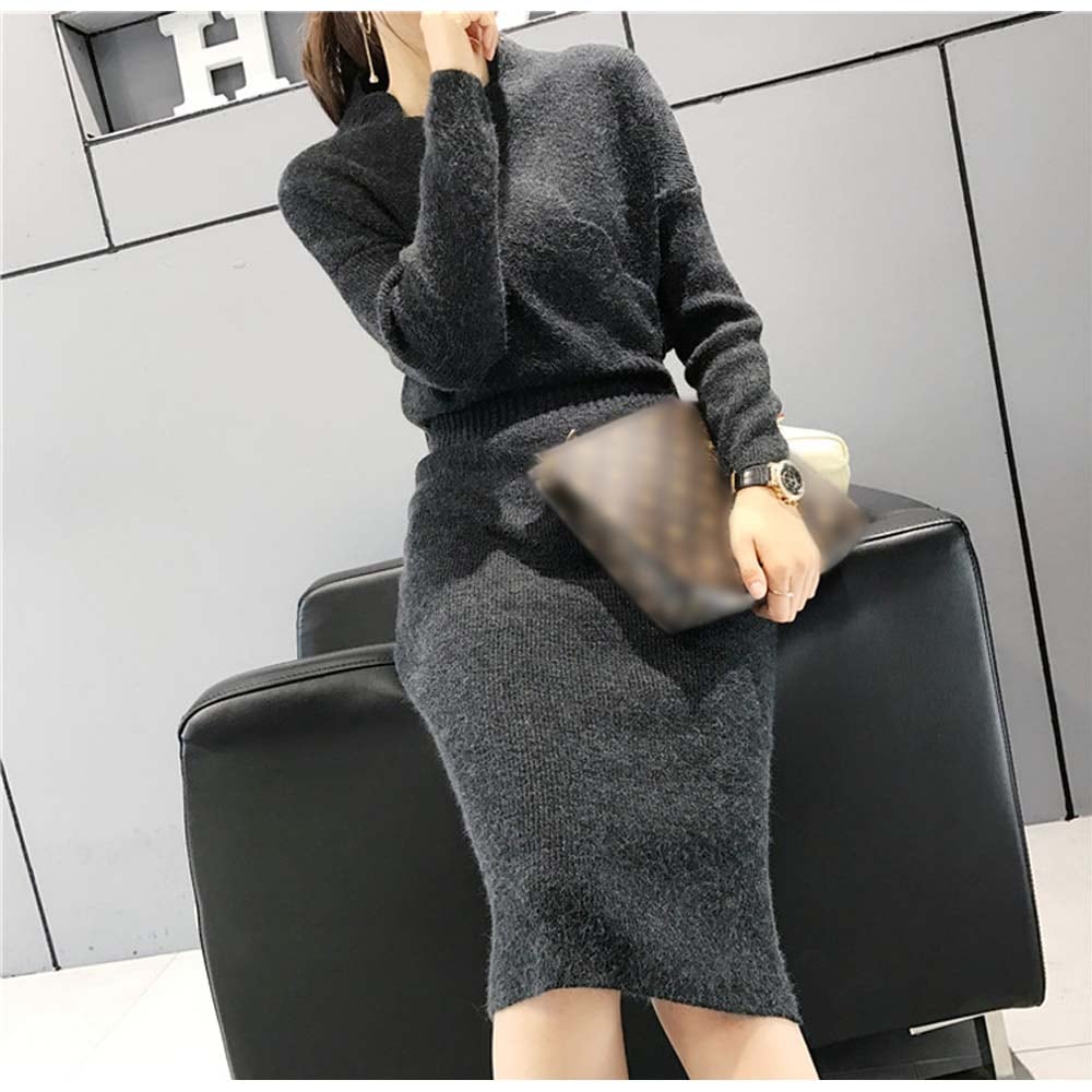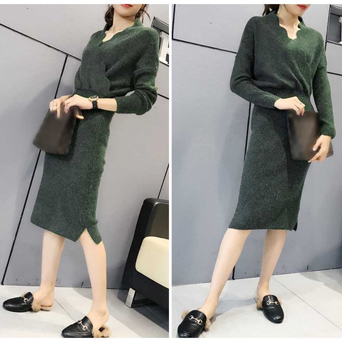 【日本倉庫即納】 ニットワンピース vネック ワンピース 秋冬 膝丈 タイト ワンピ ミディアム