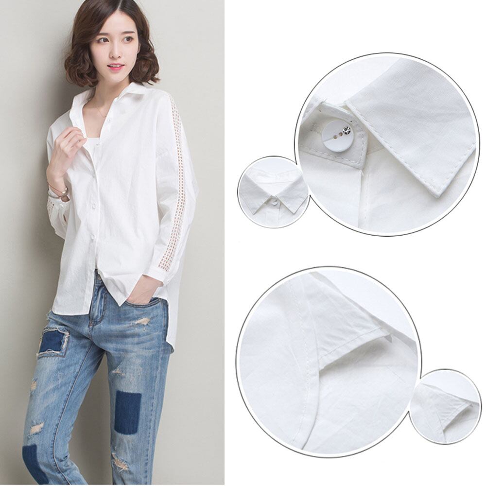 【日本倉庫即納】 襟付き 前開きシャツ レディース ブラウス 7分袖 レース切り替え トップス