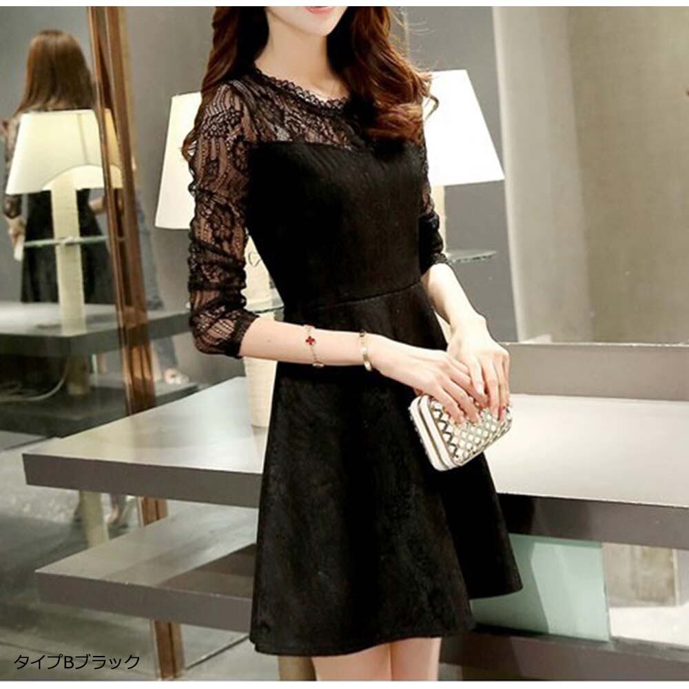 【日本倉庫即納】 長袖ワンピース レディース きれいめ レース ワンピース 結婚式 ドレス