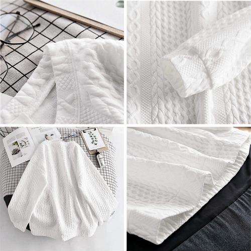 無地 プルオーバー 長袖トップス 春秋 エンボス加工 白