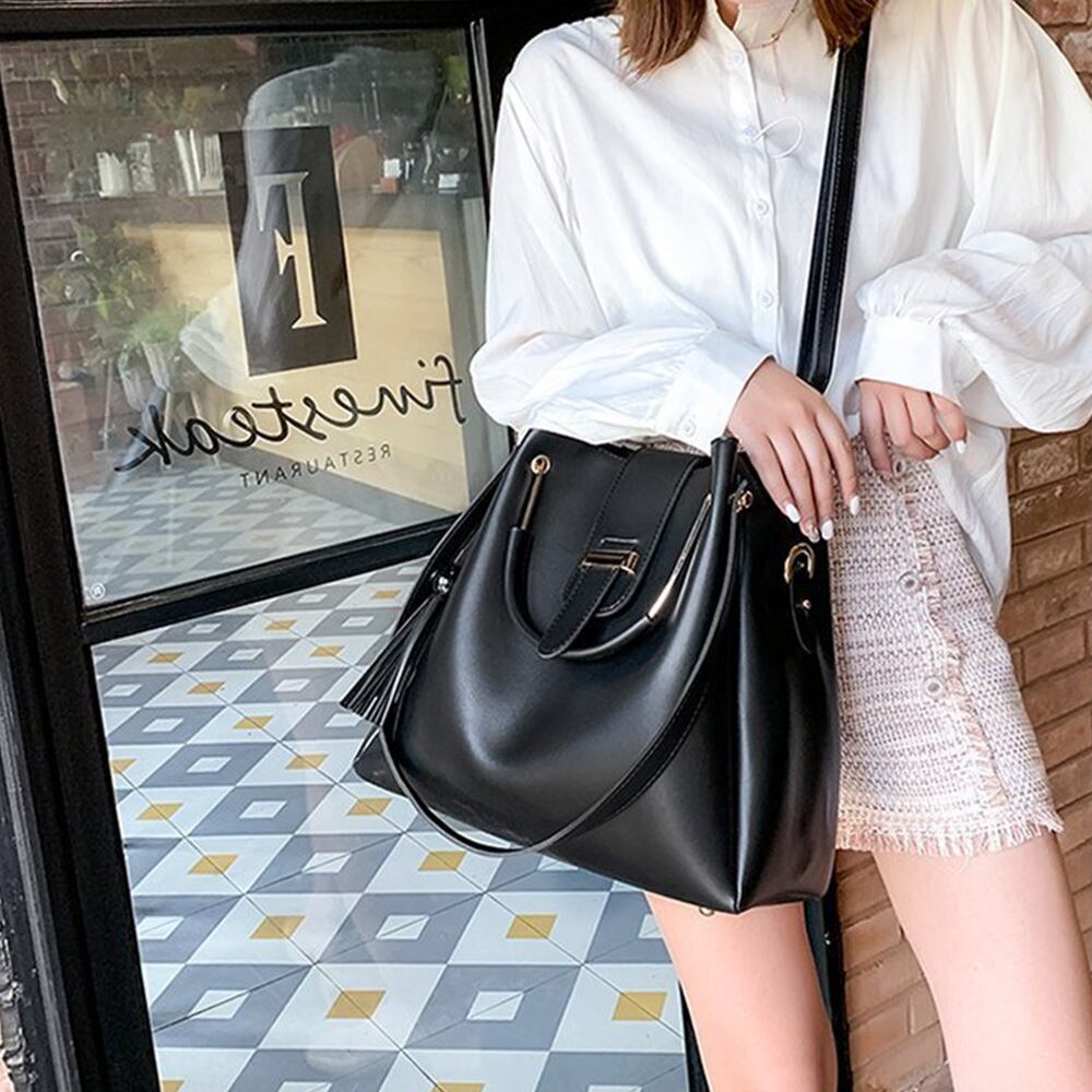 バッグインバッグ黒 おしゃれ鞄タッセル 2WAY鞄 大きめ