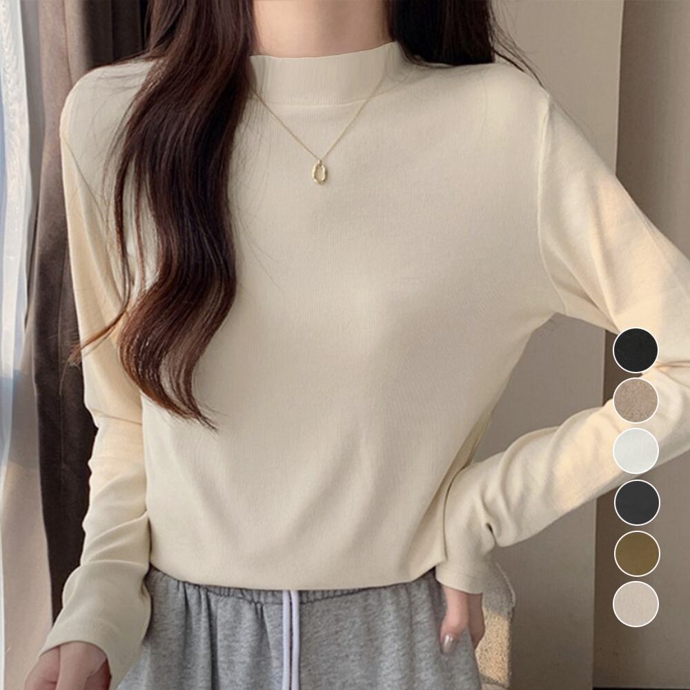 シンプル ロングスリーブ Tシャツ 重ね着 無地インナートップス プチハイネック 春秋冬 韓国 ベーシック 肌着 着やせ