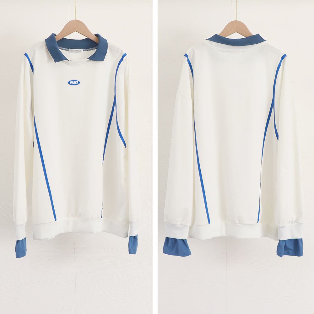 ロングTシャツ配色 ルーズトレーナー春 ライントレーナー秋