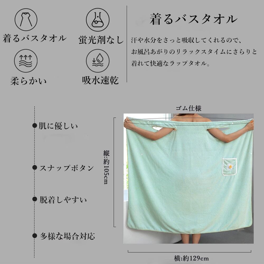 スナップボタン マイクロファイバー 着るバスタオル 海水浴 お風呂 プール ラップバスローブ スイミング お着替えタオル