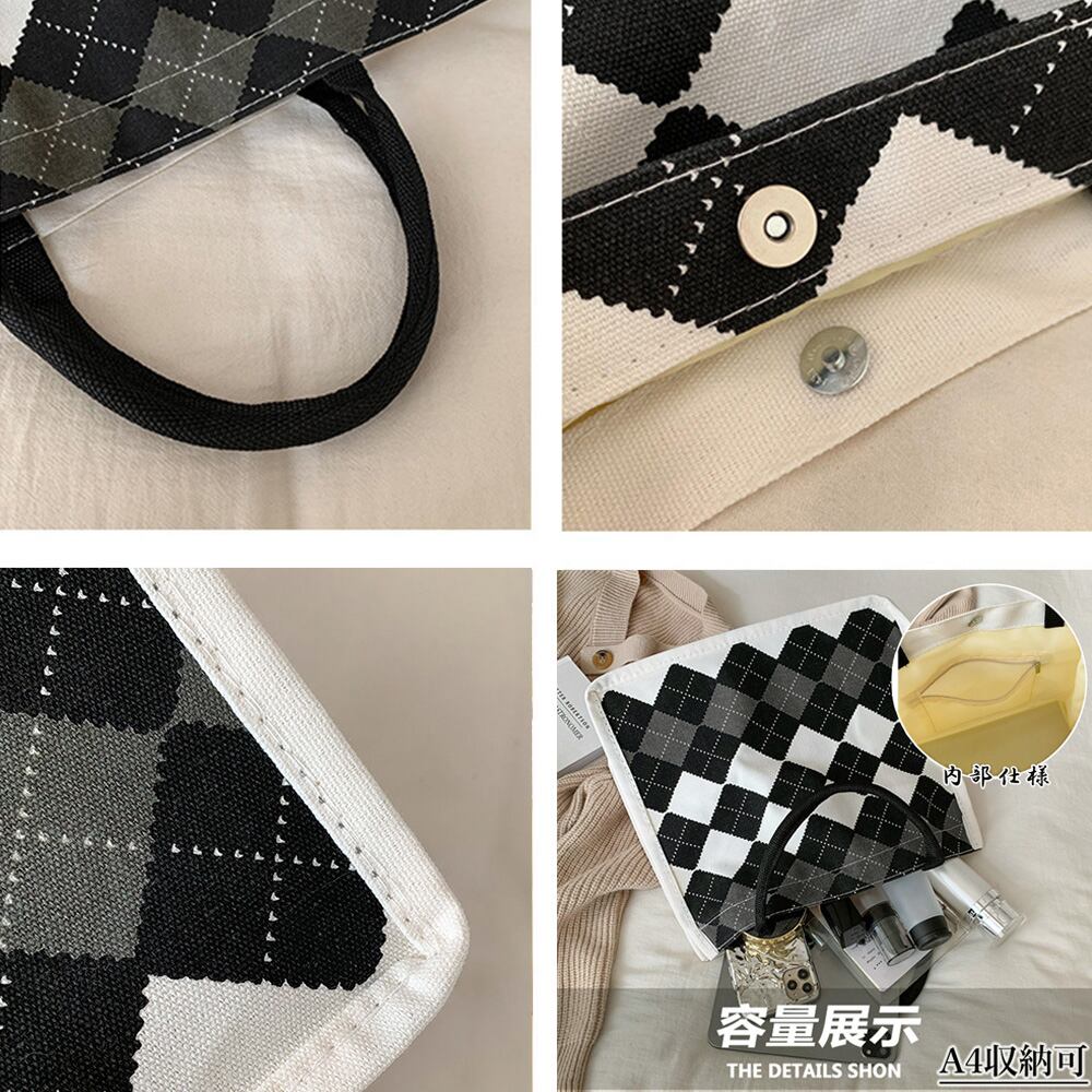 おしゃれ 配色 ハンドバッグ 大人カジュアル バイカラー 手提げかばん 通学通勤バッグ韓国 アーガイル柄 鞄 軽量大容量