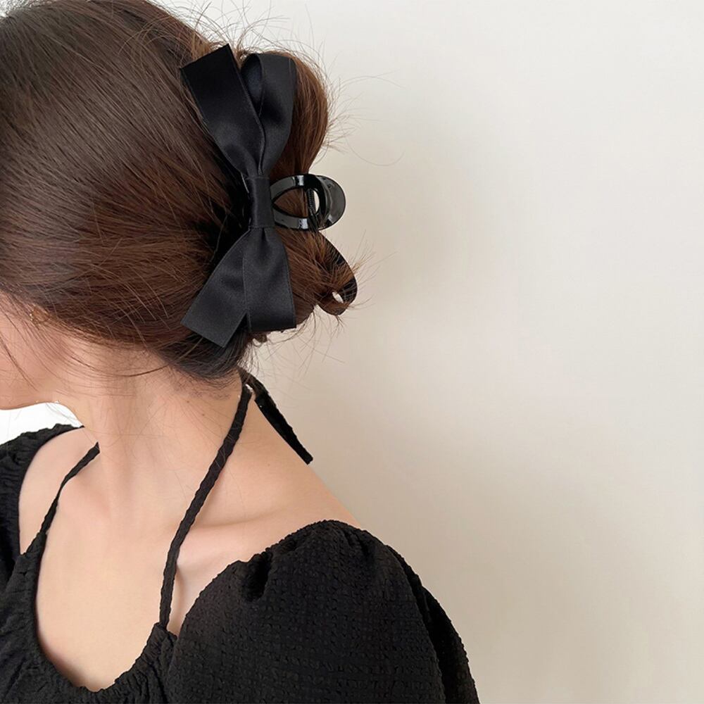 【日本倉庫即納】 ヘアクリップ バンスクリップ リボン 黒