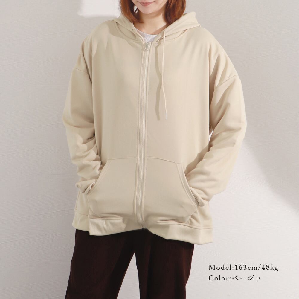 無地ZIPパーカー オシャレフーディー 羽織り カジュアル