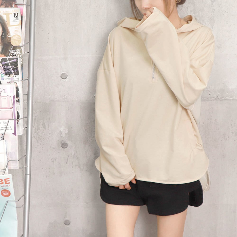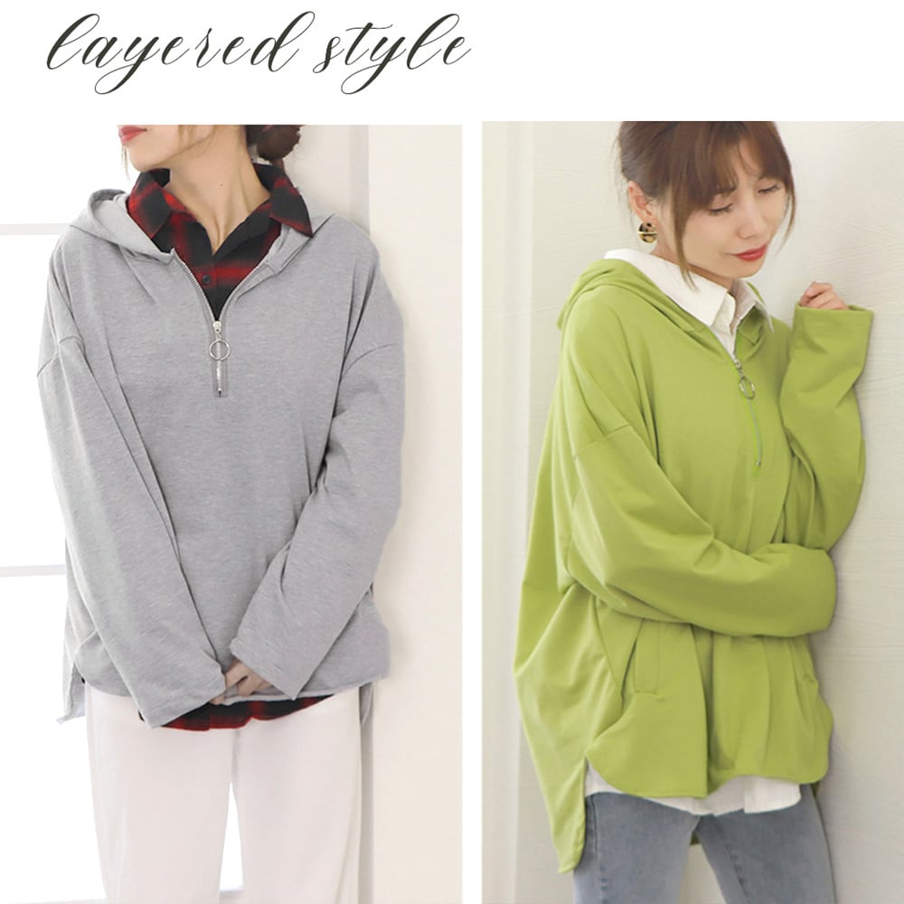 【日本倉庫即納】 ハーフジップパーカー サイドスリット
