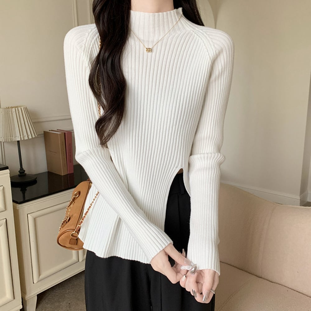 【日本倉庫即納】 ニットトップス スリット入り 春秋冬
