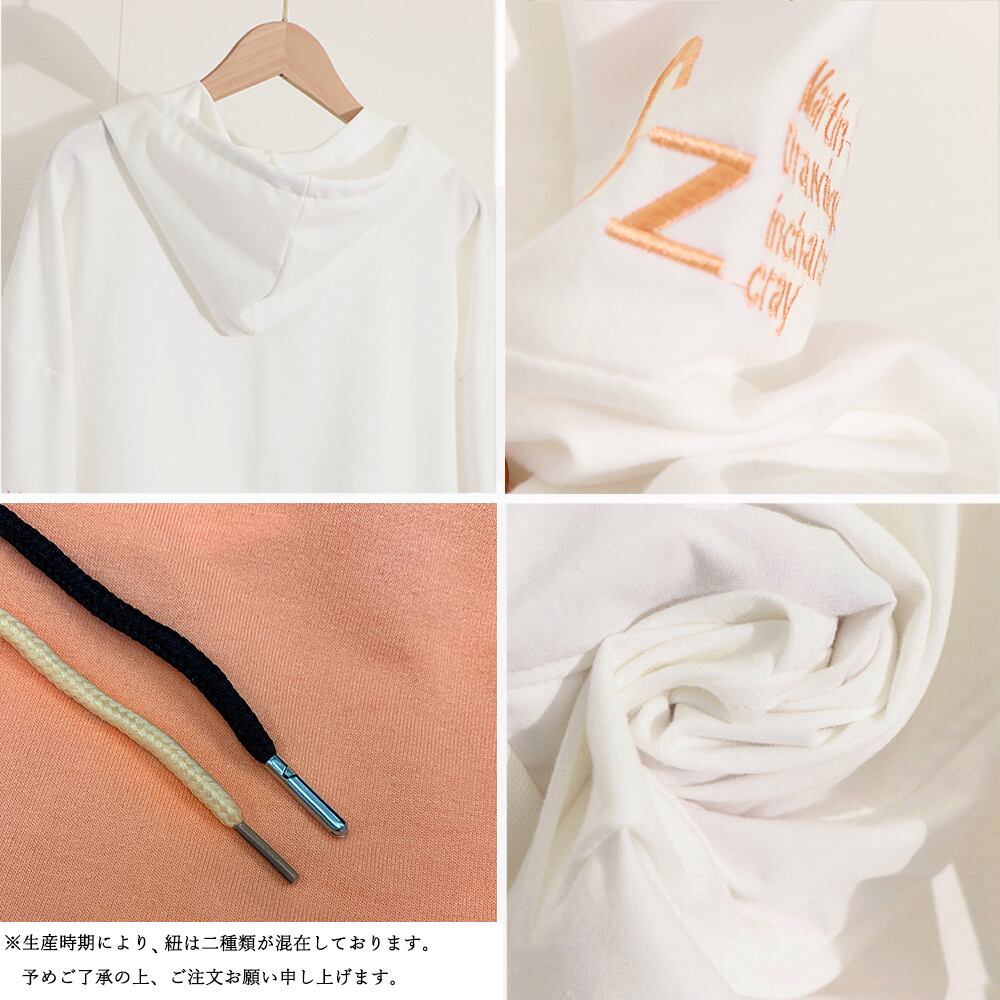 カジュアル ロゴ刺しゅう ジップパーカー 体型カバー フード付き 長袖スウェット おしゃれ ジップアップトレーナー着やせ