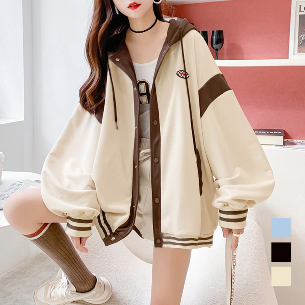 ボタンパーカー配色 羽織りカーディガン カジュアルアメカジ