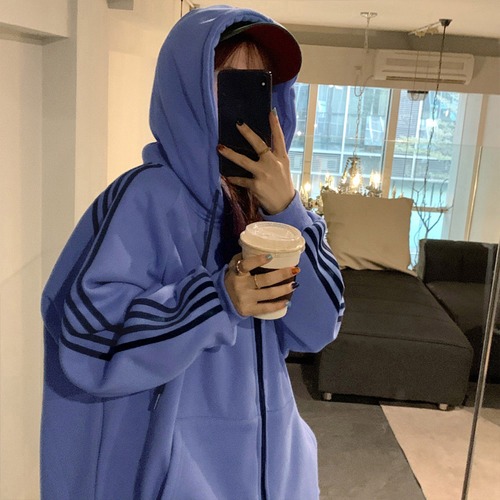 フード付き トレーナー長袖 オシャレ カジュアル レディース 前開き 韓国風 体型カバートップス ストリート着やせ