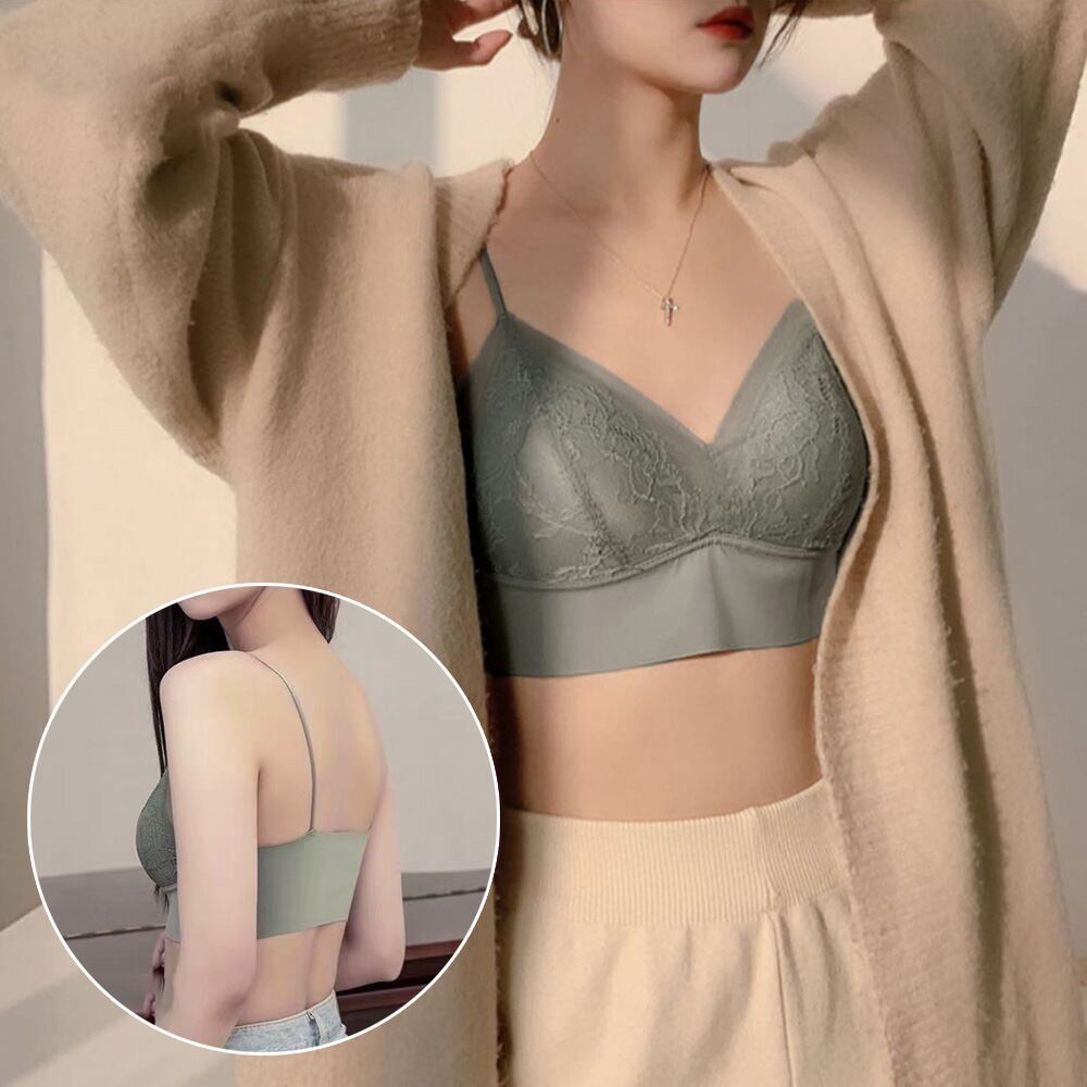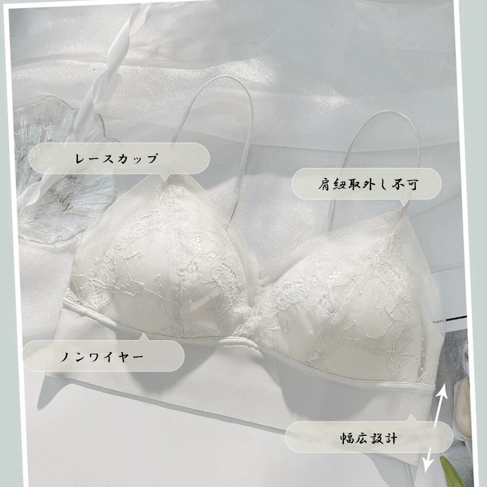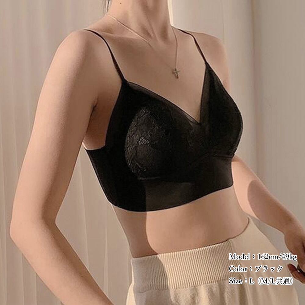 レースブラジャー ノンワイヤー単品ブラ 大人女性 ワイヤレス キャミブラ 快適インナー Vネック 美胸ランジェリー 春