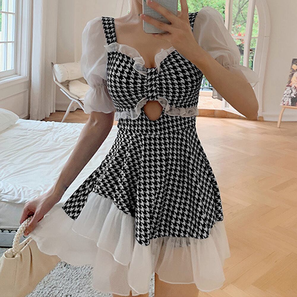 大人ガーリーな雰囲気の千鳥柄ワンピ水着