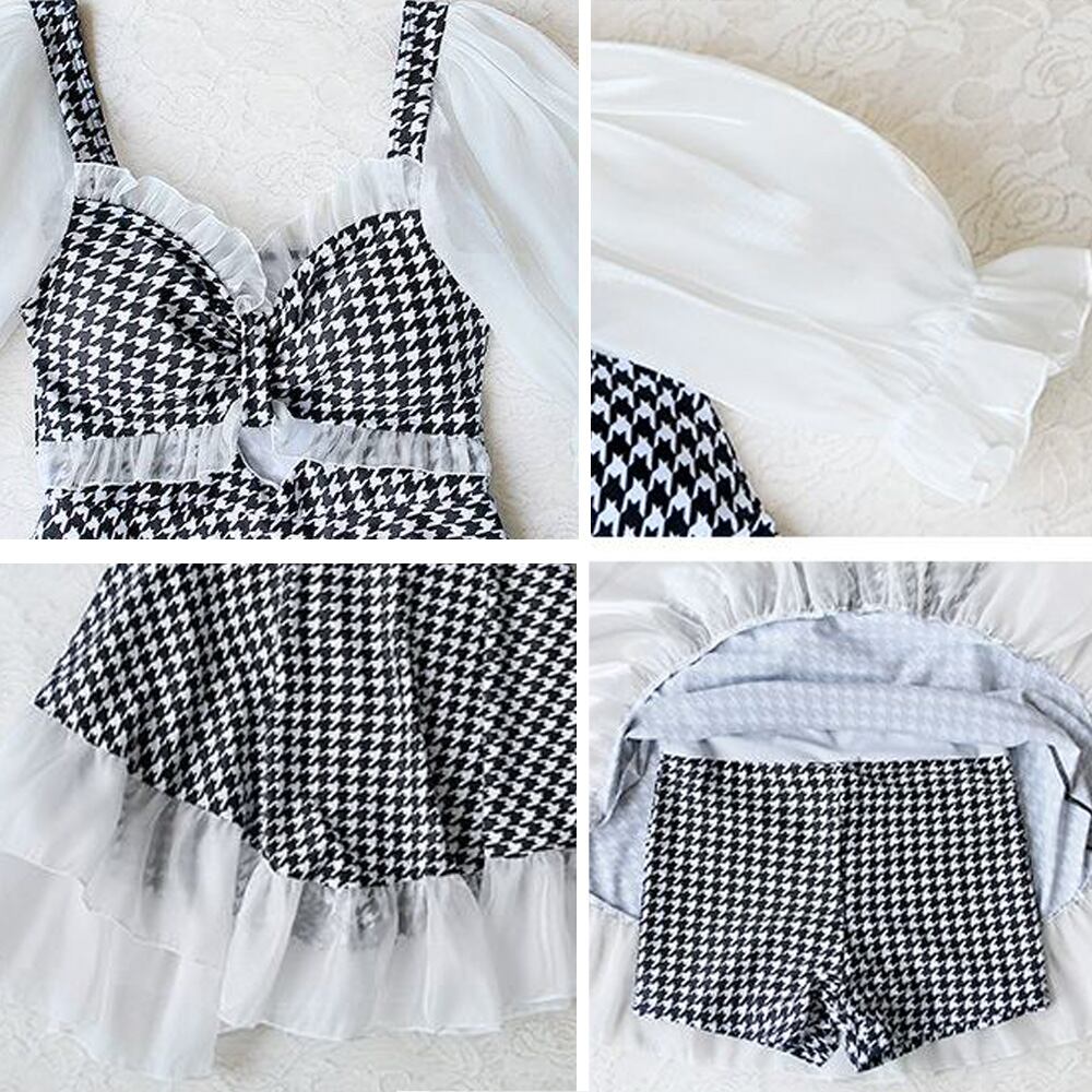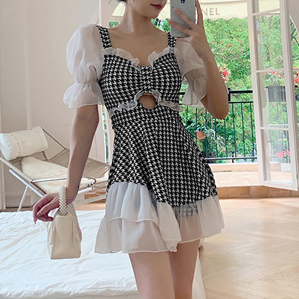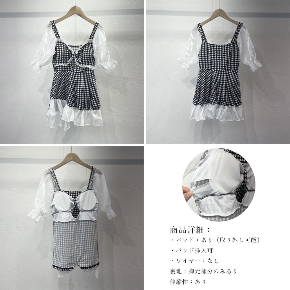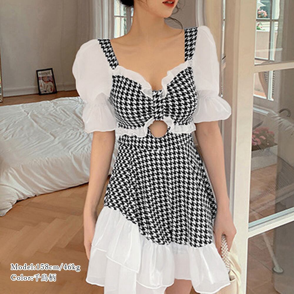 【日本倉庫即納】 ワンピース水着 千鳥柄 韓国スイムウェア