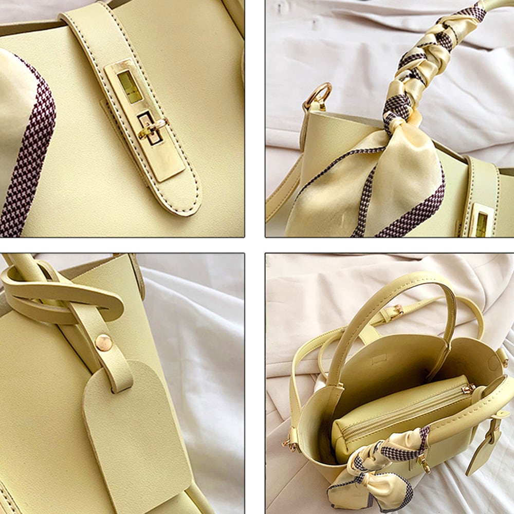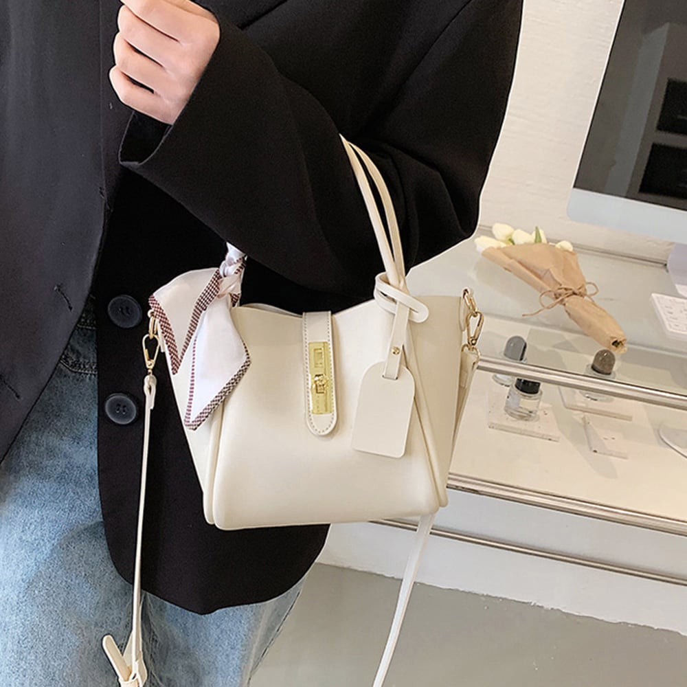 斜めがけバッグ スカーフ付き ミニハンドバッグ 上品合皮カバン OL手提げバッグ 韓国2wayバッグ通勤 肩掛けバック黒