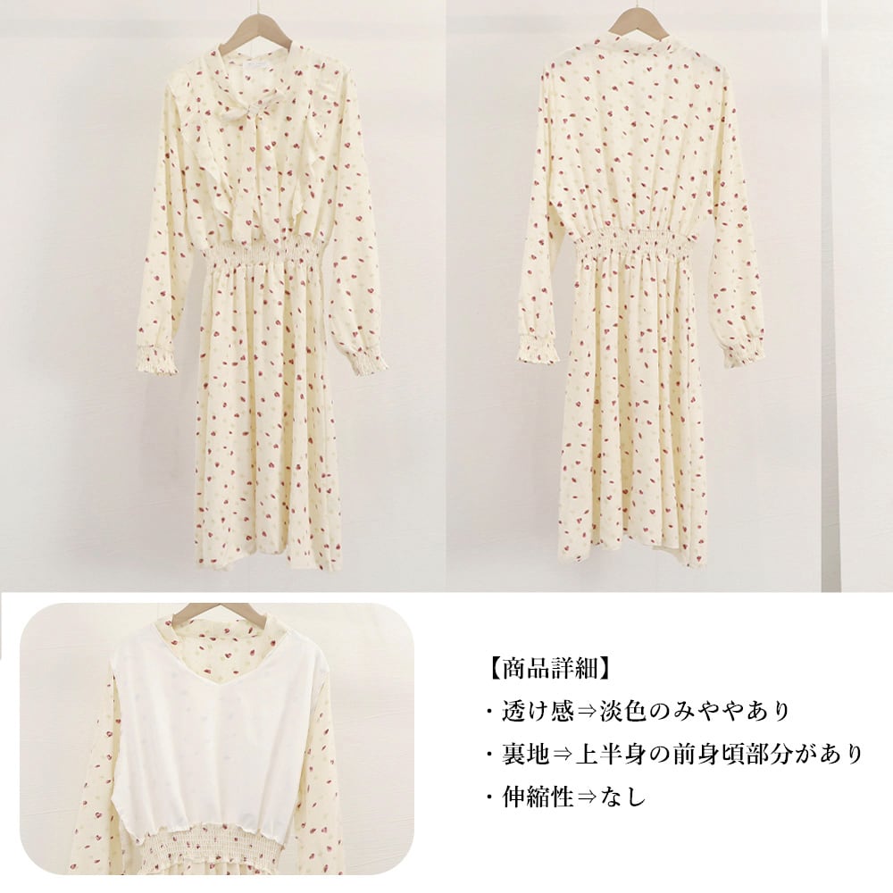 【日本倉庫即納】 小花柄ボウタイワンピース ハイウエスト