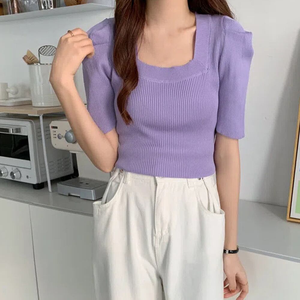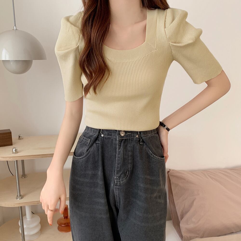 【日本倉庫即納】 スクエアネック サマーリブニットトップス