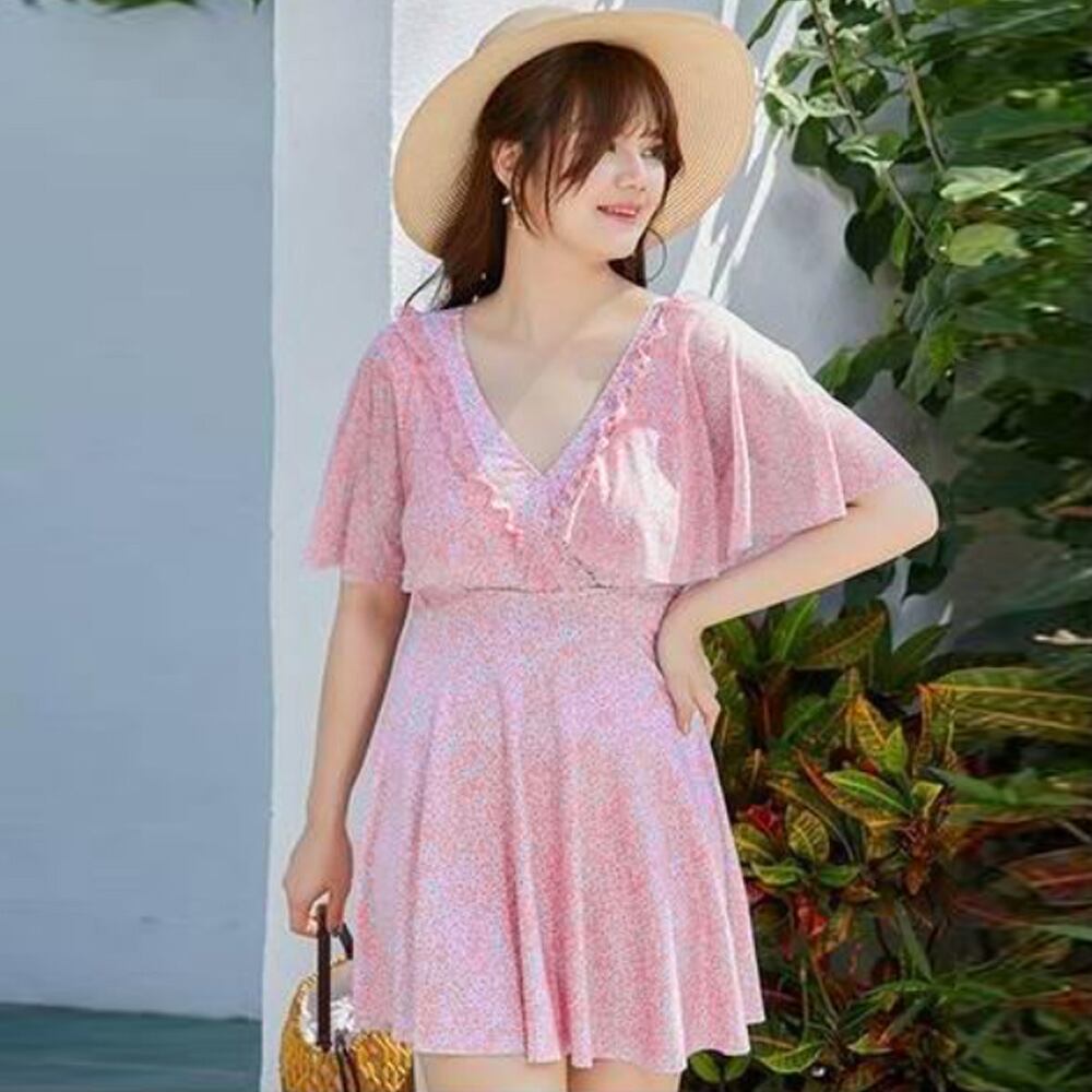 小花柄&フリルが可愛らしく、胸元を強調しながら体型をカバーするぽっちゃりワンピース水着