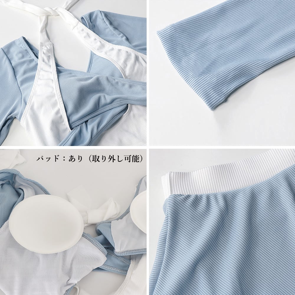 ホルターネック水着 クロスバンドゥビキニ 韓国風水着セット 長袖 ビキニスカート リゾート旅行 プール遊び ビーチ可愛い