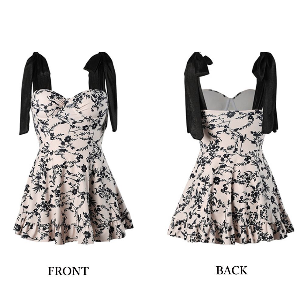 リボンストラップ水着 お洒落 スイムウエア 大人可愛い 海水浴 リゾート ビーチ オールインワン水着 露出控えめ 着やせ