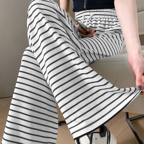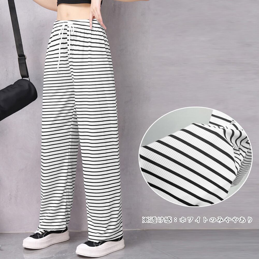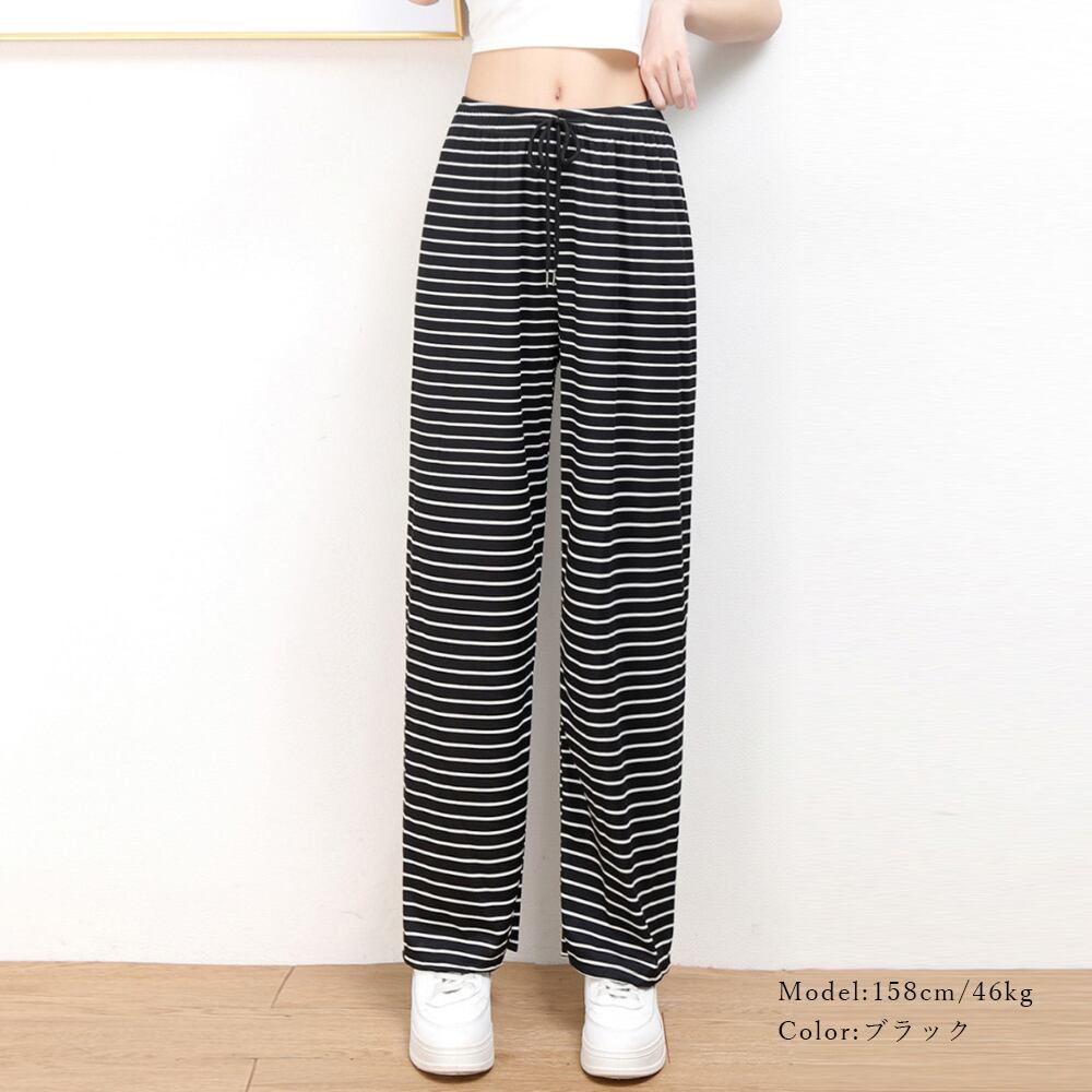 【日本倉庫即納】 ボーダー柄ストレートパンツ ウエストゴム