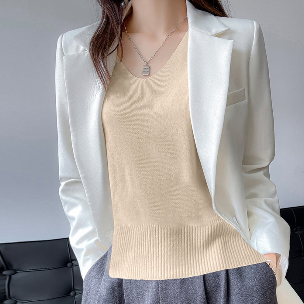 Vネックデザインで首回りを綺麗に魅せられるニットタンクトップ