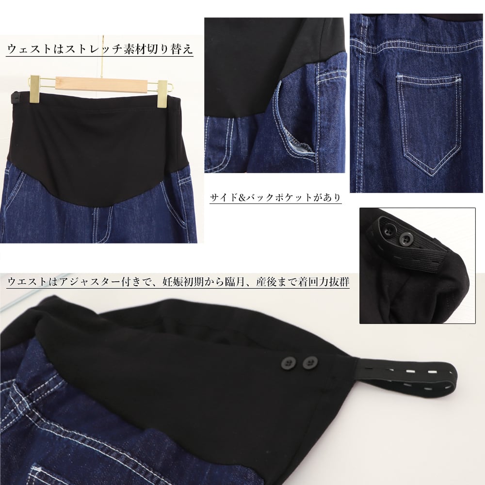 【日本倉庫即納】 マタニティズボン デニムセミワイドパンツ