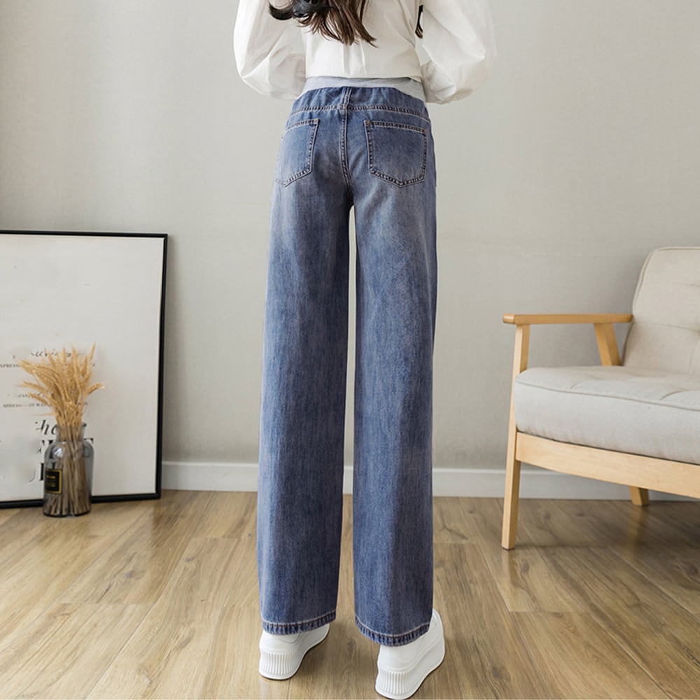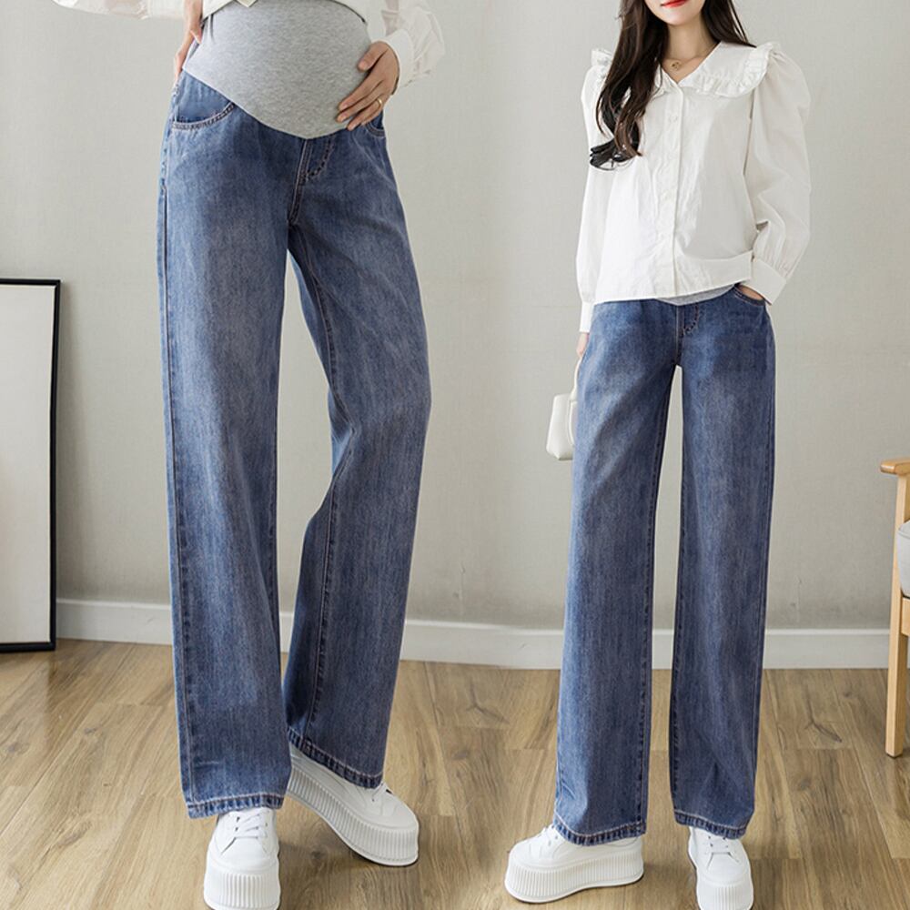 マタニティウェア 産前産後 お腹楽ちん ジーンズ ウエスト調節デニムパンツ お腹カバー ストレートパンツ アジャスター付