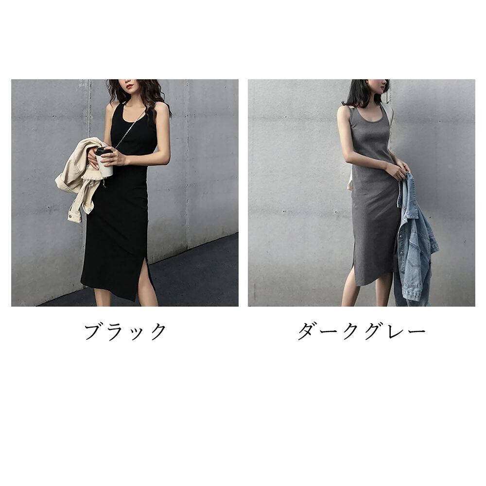 レディース タイトワンピース サマーワンピ ストラップ スリット 細見え セクシー 大人 オルチャン 涼しい おしゃれ