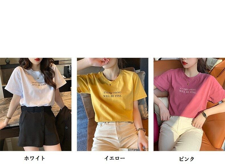 半袖Tシャツ レディース 英字柄 夏 韓国ファッション