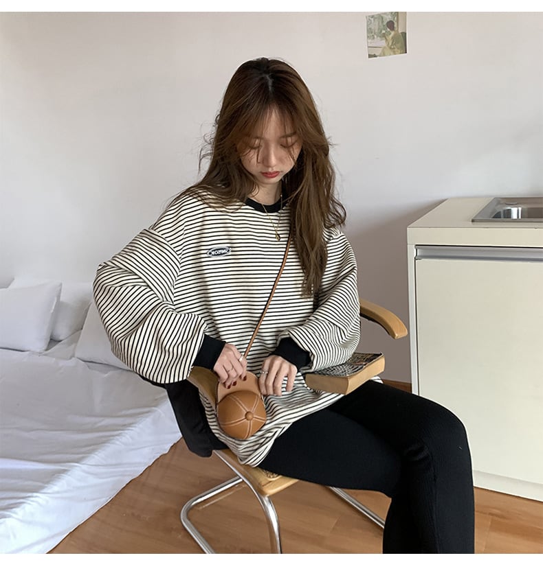毎日でも着たくなる細ボーダー柄のゆったり長袖Tシャツです。