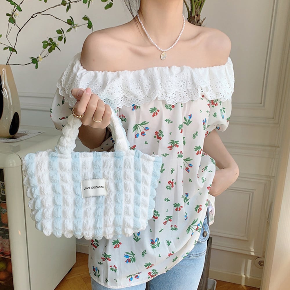 ポコポコとした表面感が可愛らしいポップコーン生地のミニトートバッグ