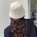 外側に英字ロゴのタグが付いたバケットハットの登場です。