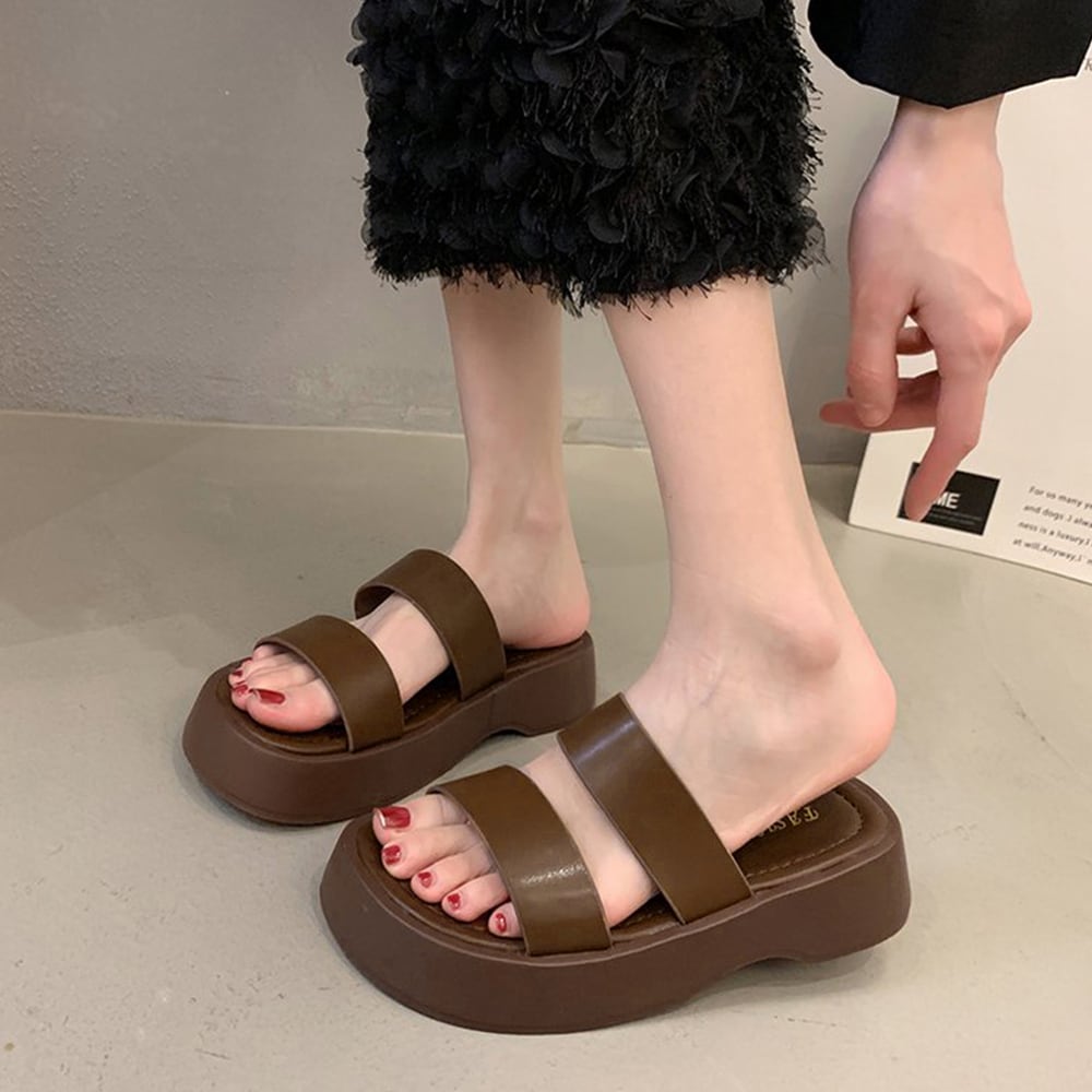 履き心地の良さと歩きやすさにこだわり、デザイン性も兼ね備えたダブルベルト厚底サンダルです