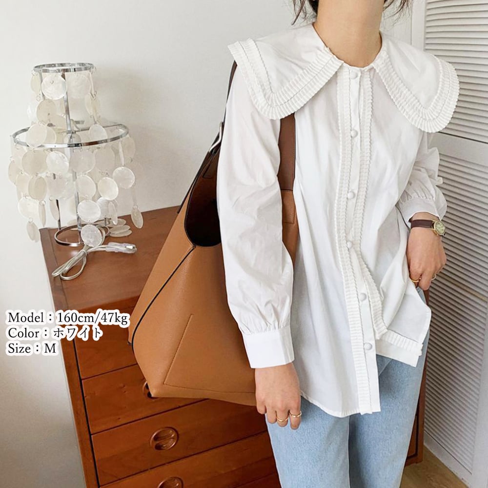 【日本倉庫即納】 ビック襟長袖シャツブラウス フリルカラー