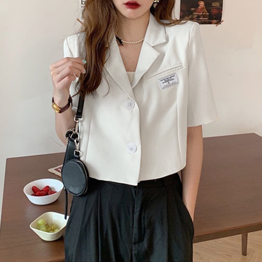 レディース クロップド半袖サマージャケット 通学通勤ジャケットカーディガン 半袖羽織りオフィスカジュアル ライトアウター