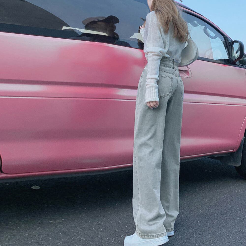 2ボタンハイウエスト ジーパン 細見え 韓国 ロングパンツ 脚長 ゆったり ジーンズ カジュアル オールジーンズ 着やせ