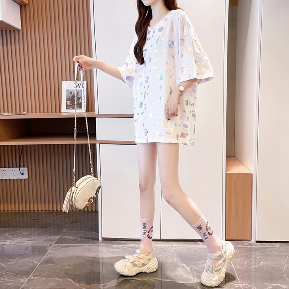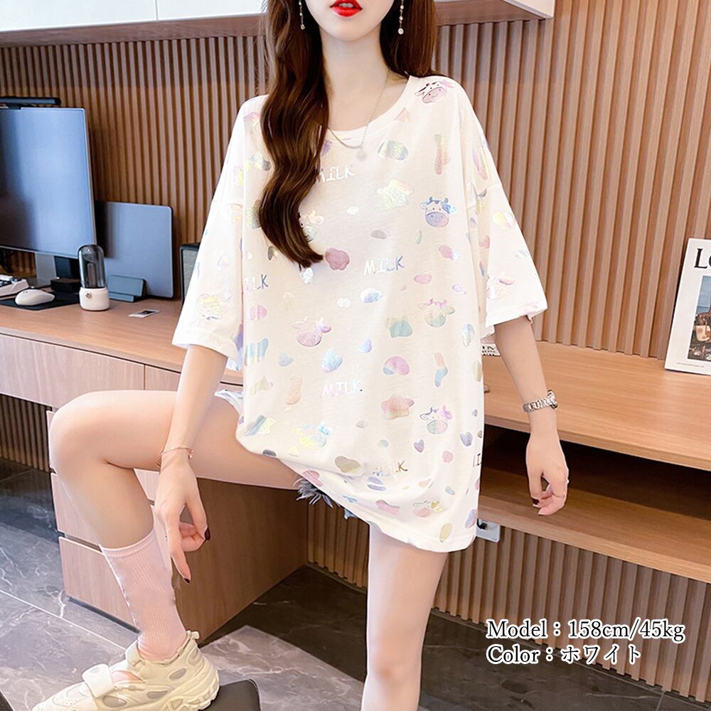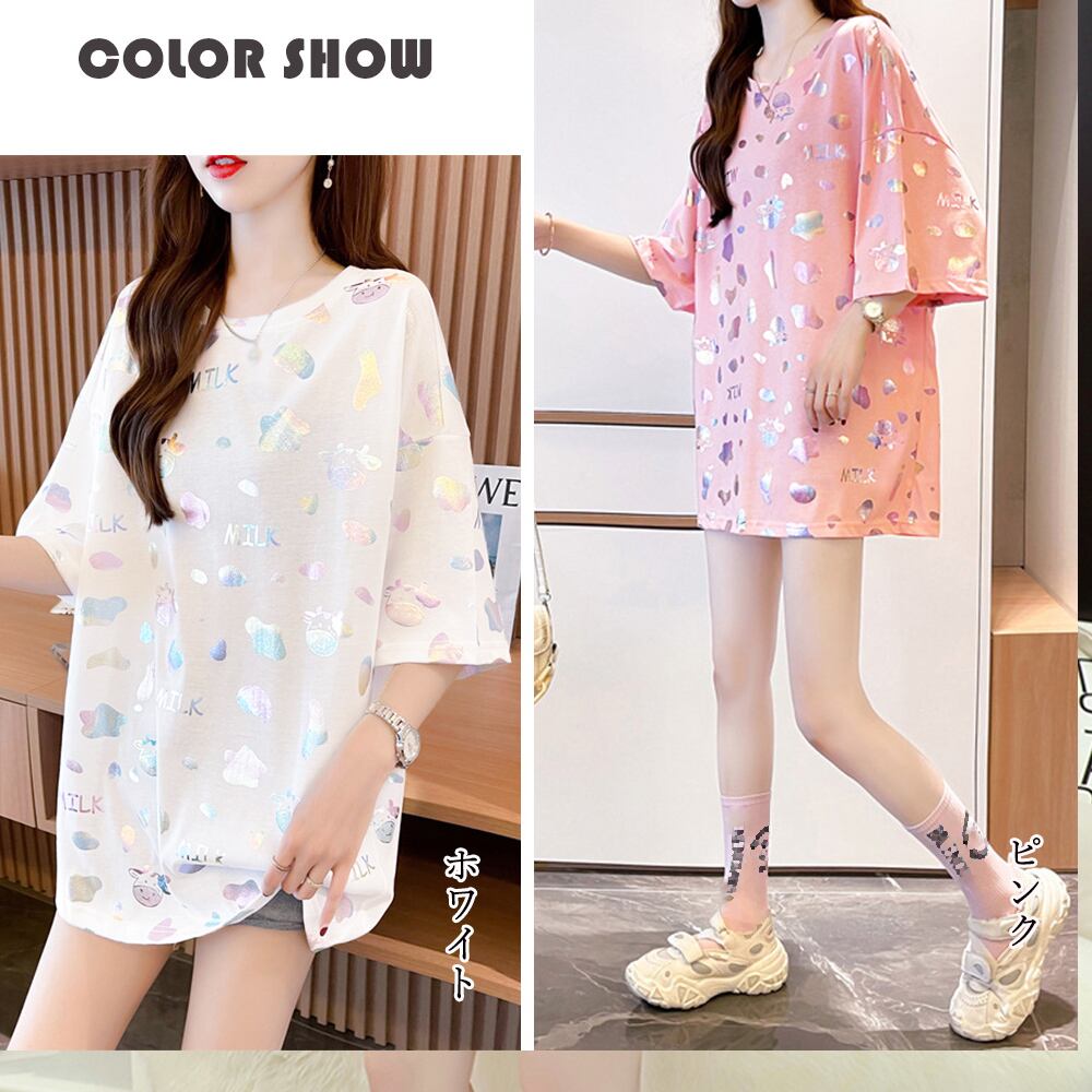 英字ロゴ オーロラホログラムTシャツ オーバーサイズ おしゃれゆったり ビッグtシャツ オルチャン韓国 ロングtシャツ