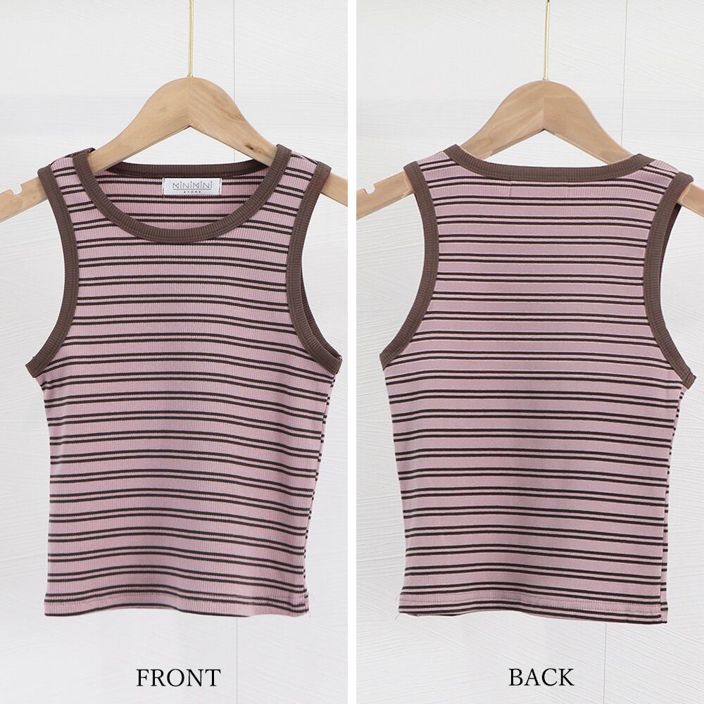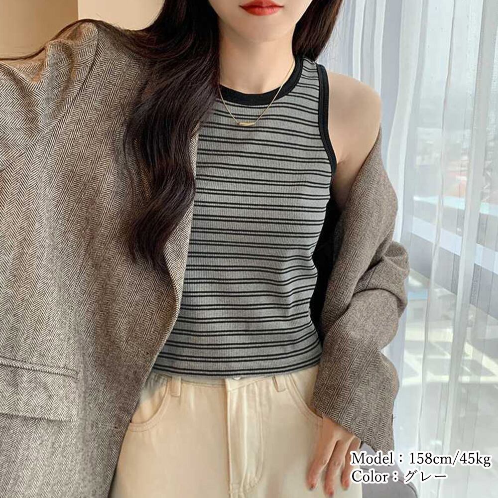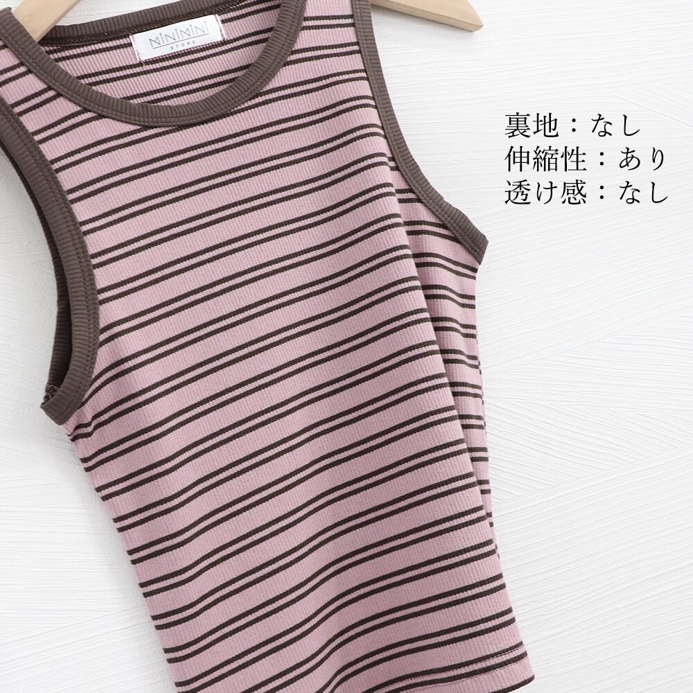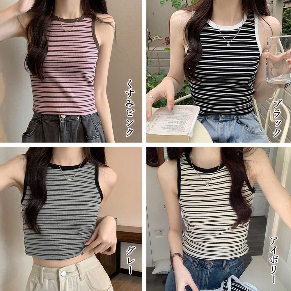 【日本倉庫即納】 クロップド丈 タンクトップ ボーダー柄