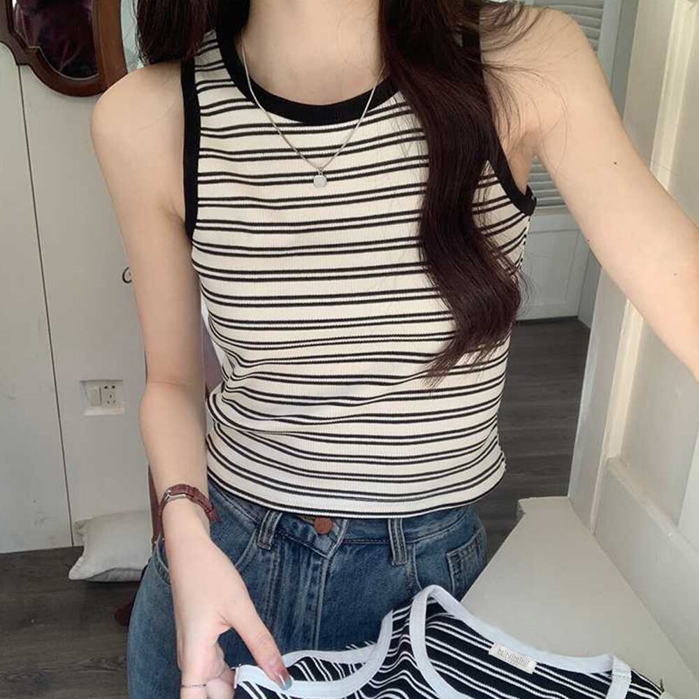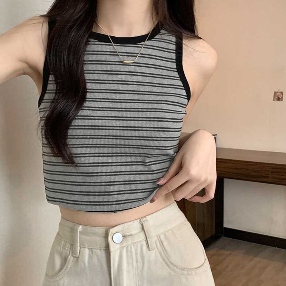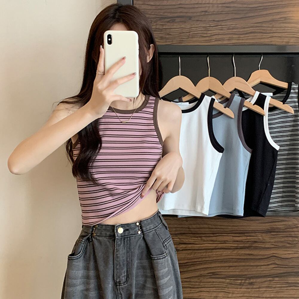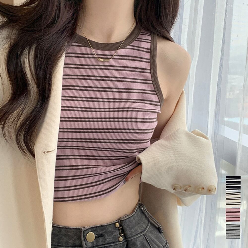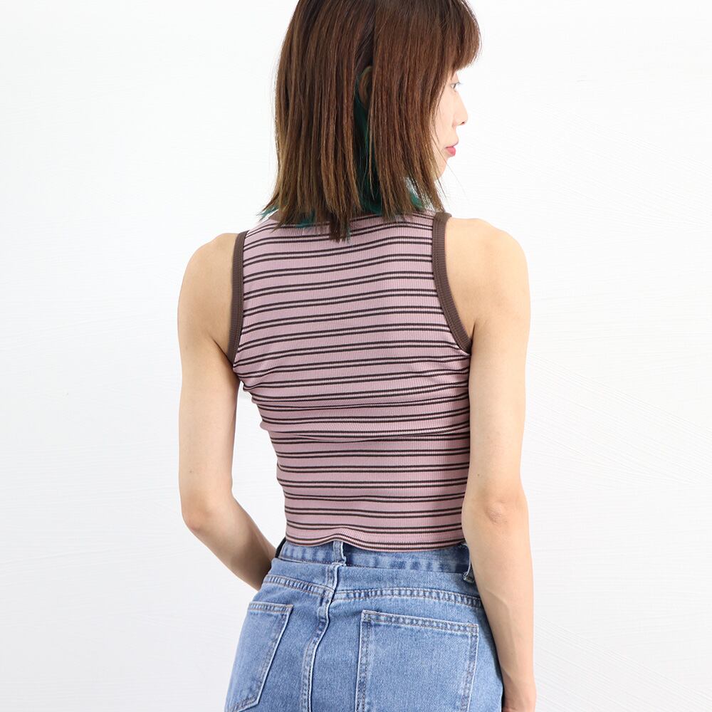 【日本倉庫即納】 クロップド丈 タンクトップ ボーダー柄