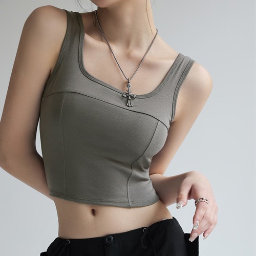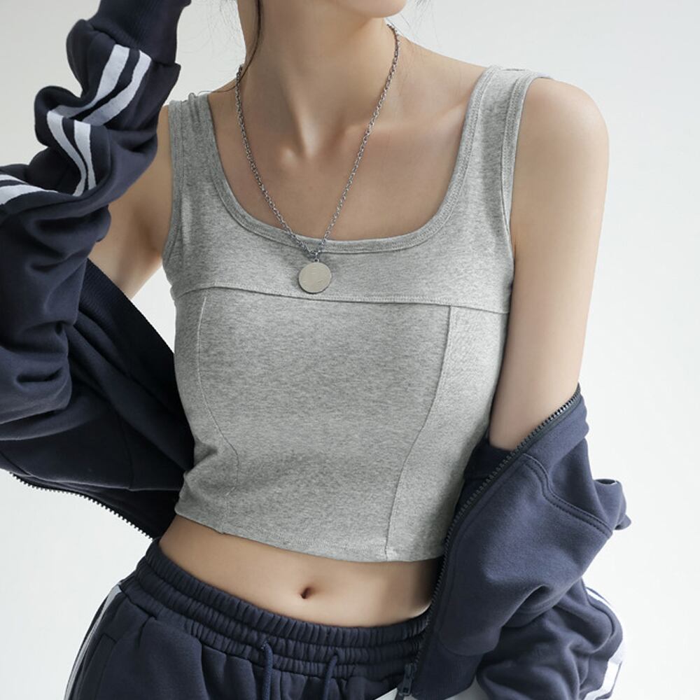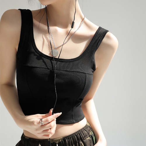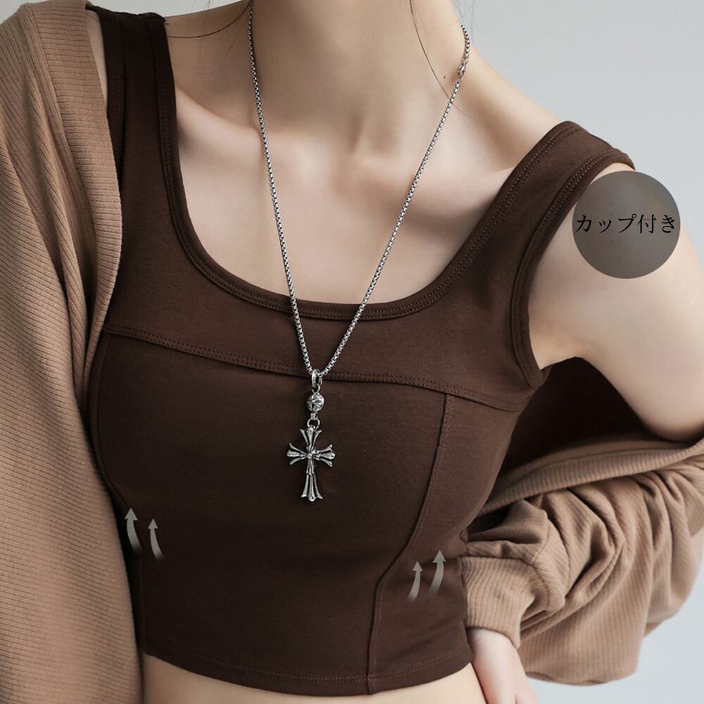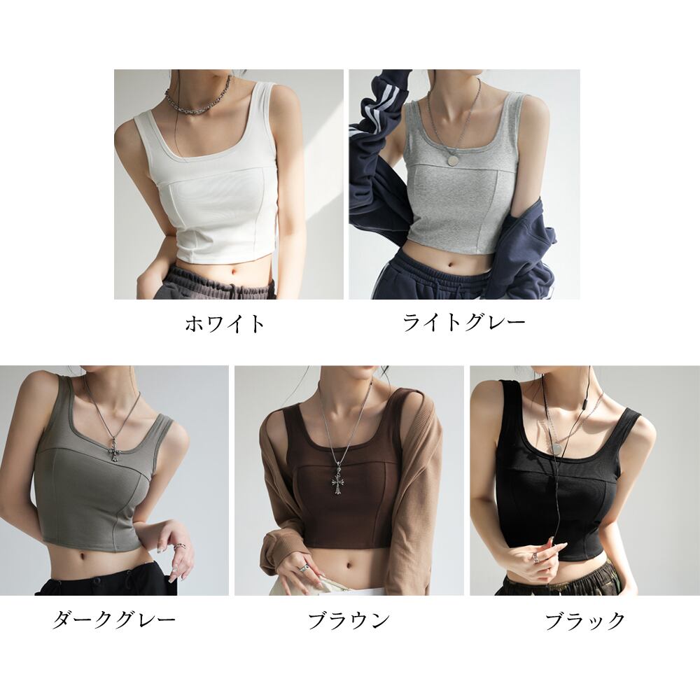 【日本倉庫即納】 タンクトップ ショート丈 カップ付き韓国