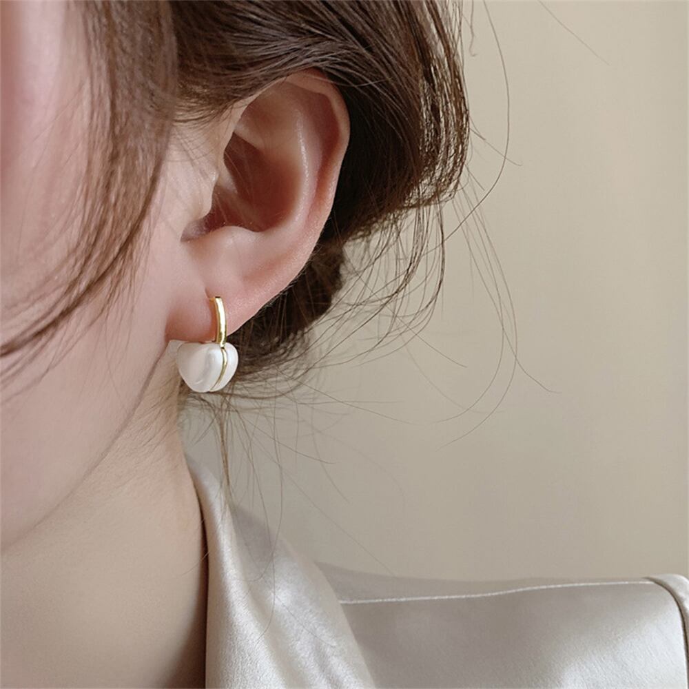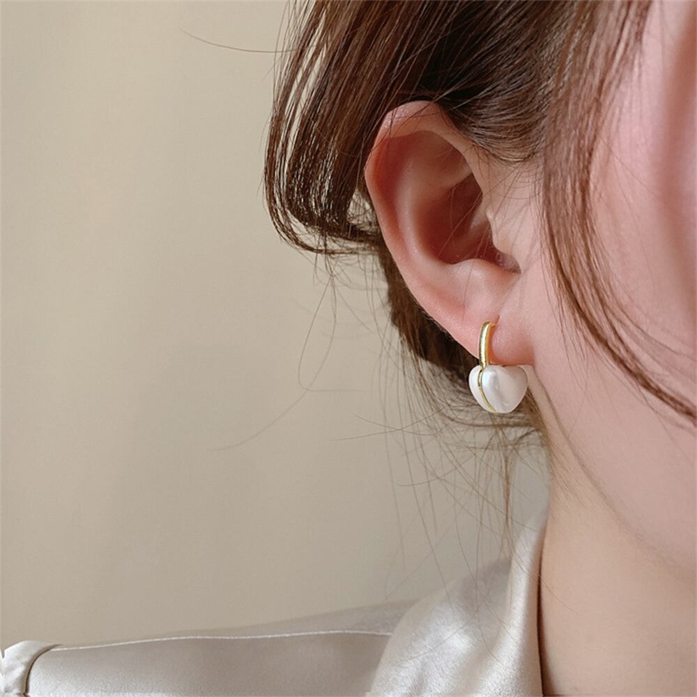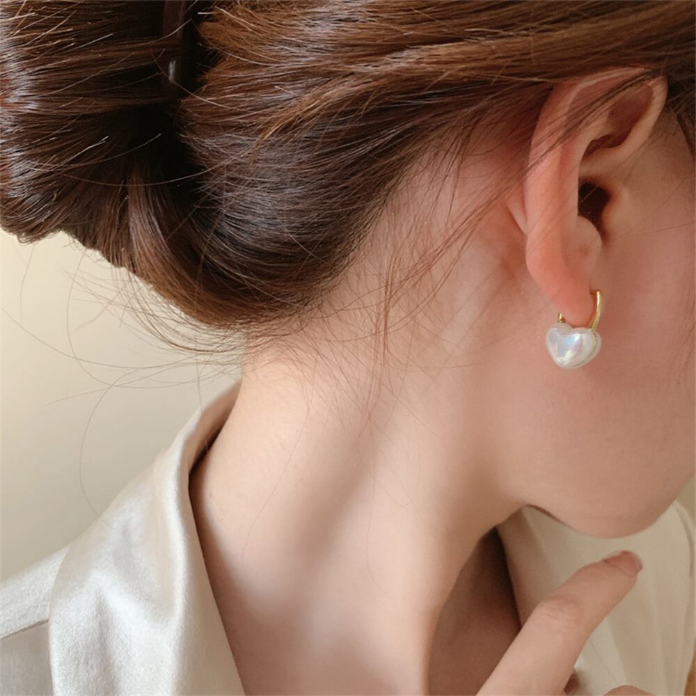 美しい光沢のあるフェイクパールを使用したハートピアス