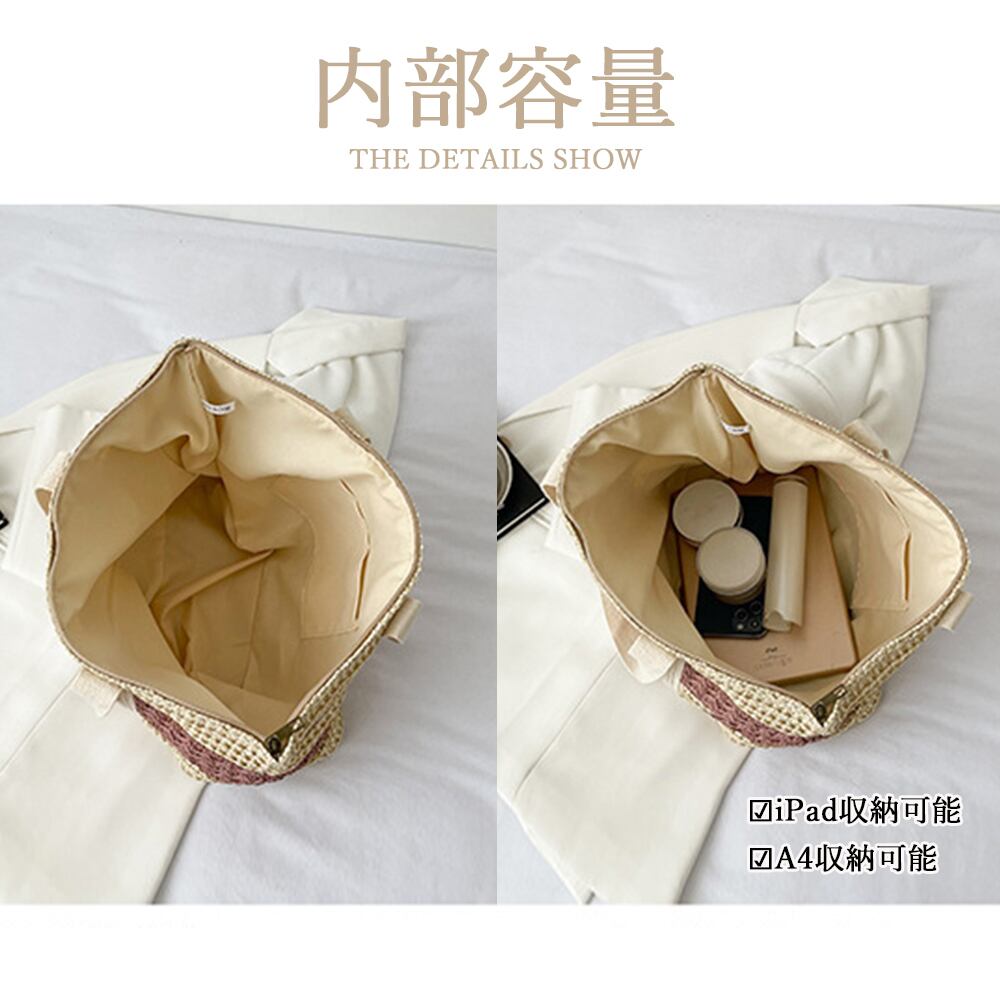 レディース おしゃれ ストローバッグ 麦わらバッグ a4 大容量肩掛けバッグ 夏新作 サマーバッグ バイカラー大人可愛い